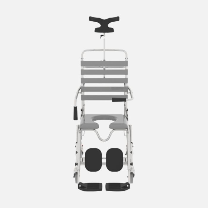 The Aspire Advanced Headrest is a padded support designed to provide head and neck positioning for users seated in shower commodes. It features adjustable height and depth to allow clinicians to achieve appropriate alignment and comfort for individual needs. The headrest is compatible with most Aspire shower commodes and can also be adapted to suit other commode systems.