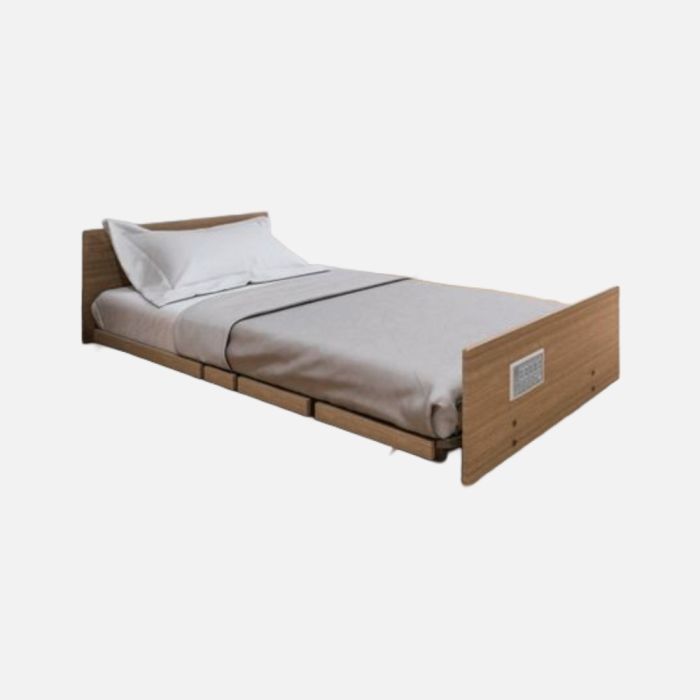 The Aidacare FL250 Floorline Bed is an electrically adjustable care bed designed to support safety, positioning and caregiver access. The ultra low platform height helps reduce the risk of injury from bed exits while maintaining full electric positioning functions.