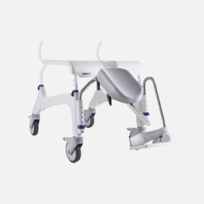 The Aquatec Calf Support is designed to provide padded support for users with below-knee amputations when seated in compatible Ocean commodes. It supports positioning of the residual limb, helping improve comfort and stability during use. The support is adjustable in both height and angle to suit individual requirements and can be configured for left or right side use.