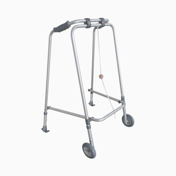 - Lightweight aluminium walking frame with height adjustment to suit individual users.
