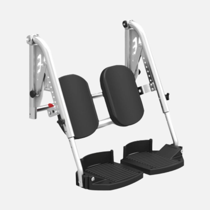 The Aspire Shower Commode Elevating Legrests are designed to support leg positioning and elevation for users requiring additional lower limb support. The legrest can be adjusted through multiple angle positions to assist with elevation, commonly used in the management of oedema. The footplate is also adjustable in height and angle to suit individual positioning needs, and the unit is compatible with Aspire shower commodes fitted with swing away legrests.