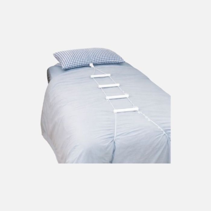 The Bed Rope Ladder is a simple aid designed to help users sit up or reposition themselves in bed. By pulling on the rungs one at a time using a hand-over-hand movement, the user can gradually raise their upper body into a sitting position.