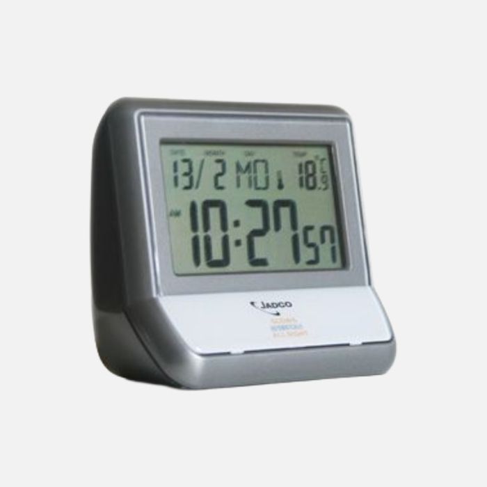 The Bedside Calendar Alarm Clock with Night Light displays the time, day, date and temperature in a clear digital format. It is designed for bedside use where the information needs to be visible during both day and night.