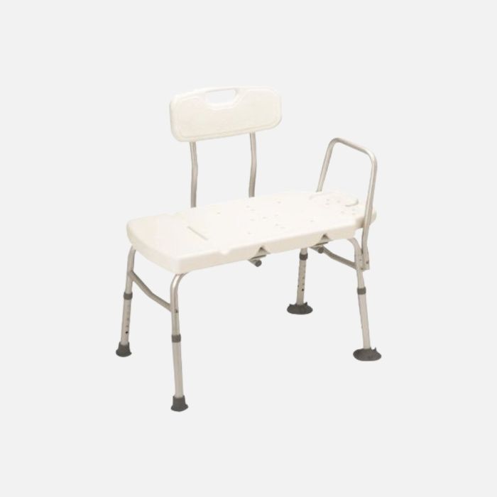 The bench allows users to sit and slide across into the bath, reducing the need to step over the tub edge. This supports safer transfers and reduces fall risk.