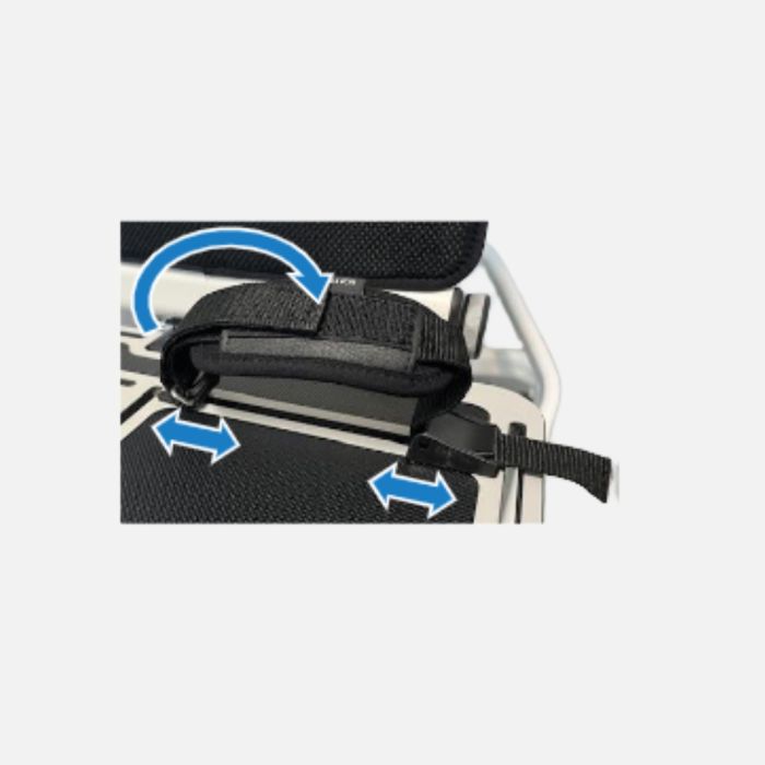 - Padded foot strap designed to secure foot positioning on Thessa footrests.