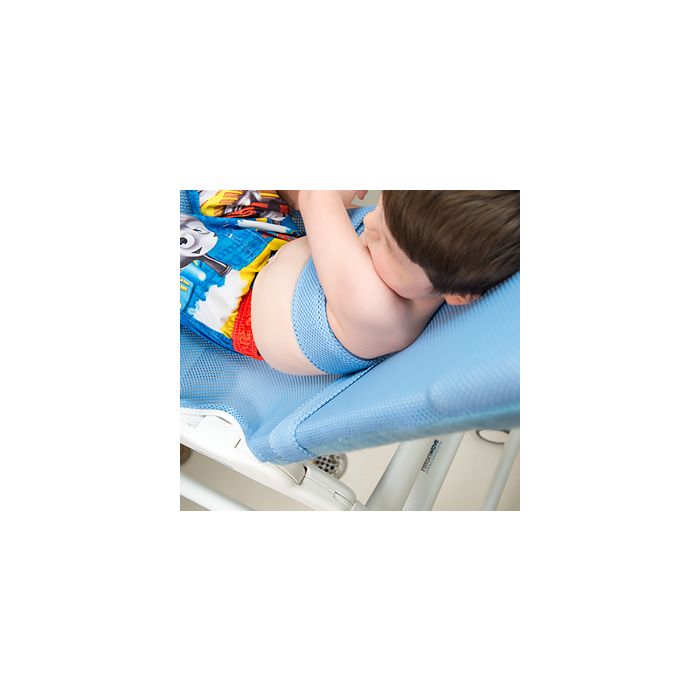 Unlike the laterals on most bath chairs, The Wave's soft fabric laterals will not get in the way during transfers.