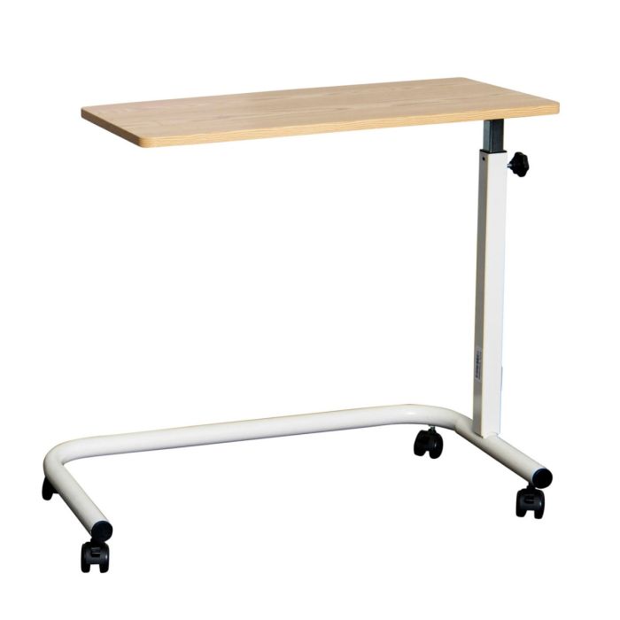 This new overbed table features a gas assisted lift mechanism which allows for easy and controlled height adjustment of the table. By simply releasing the adjustment lever, the table can be lowered or brought higher with one hand. Our overbed tables come with a wide C-base frame, which provides terrific stability, while also being large enough to fit around the widest of lift or recliner chairs. The overbed tables also feature easy-swivel castors, two lockable, to make it easy to move the table to where you want it.