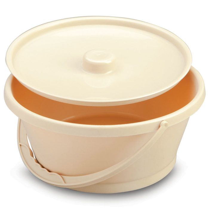Bowl with Handle and Lid for KCare Bedside Commodes.