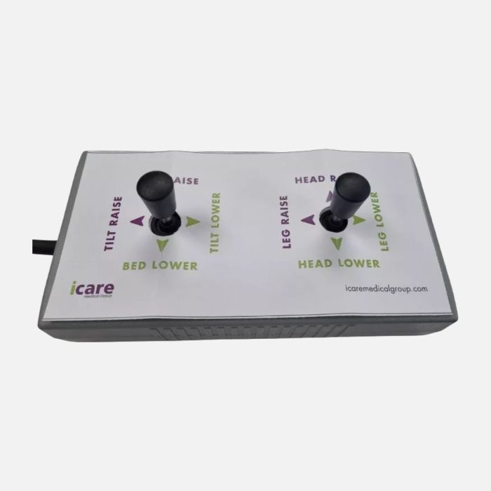 The Dual Joystick Controller is a modified bed control system designed for users with limited hand mobility. It replaces the standard handset with a joystick interface for easier operation.