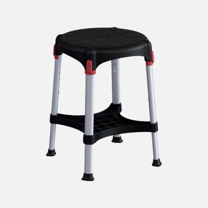 The Eastman KING Shower Stool with Tray is a compact seating solution designed to provide support during showering and bathroom use. It features height adjustable legs to suit different users and surfaces, along with a stable aluminium frame and non-slip tips for safety. The integrated tray provides a convenient space for personal items while also adding structural stability, and the seat includes a drainage hole to assist with water management.