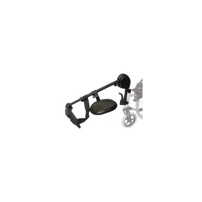 An optional wheelchair leg rest that enables the user to keep their leg elevated.
