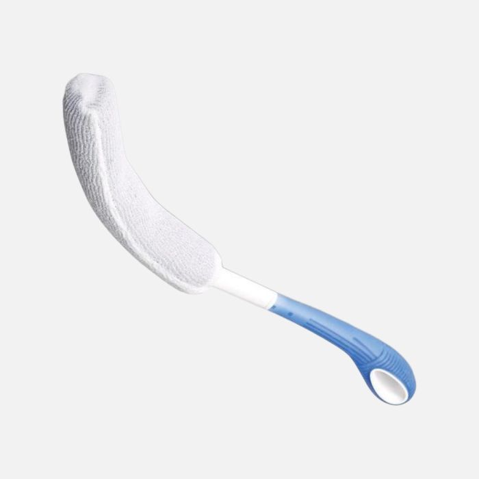 The wash cloth head is designed to remain lightweight and balanced because it does not absorb water. This helps reduce fatigue during washing while still providing effective cleansing. Replacement cloths are available to maintain hygiene and extend the product’s lifespan.