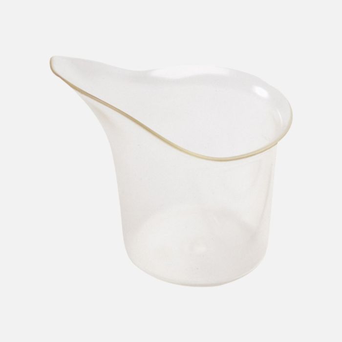 The Etac Feed Dose Mug is a transparent drinking aid designed for individuals who need to drink or take medication while reclined.
