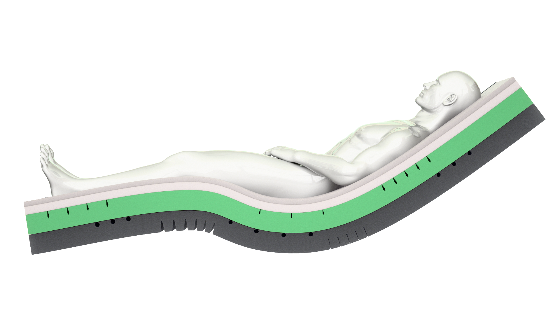 Compatible with adjustable bed systems and designed to move with bed articulation. Profiling supports flexibility during positioning, including backrest and knee adjustment, while maintaining consistent support and surface stability across different configurations.