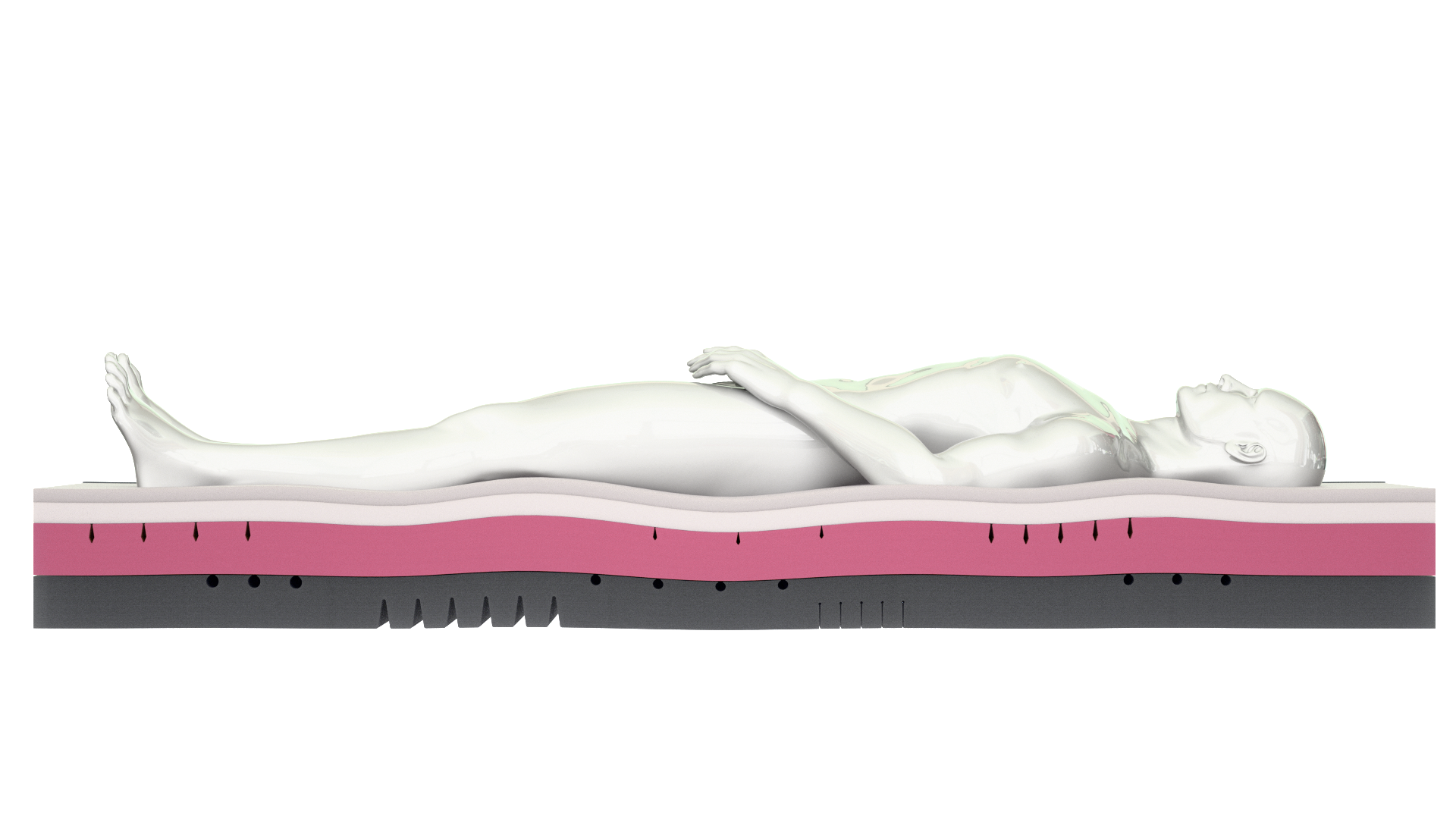 Designed to support safe use and effective pressure management, the mattress combines stable edge support, controlled immersion and consistent surface response to reduce risk during transfers and repositioning while promoting even pressure distribution and maintaining functional support for movement and daily use.