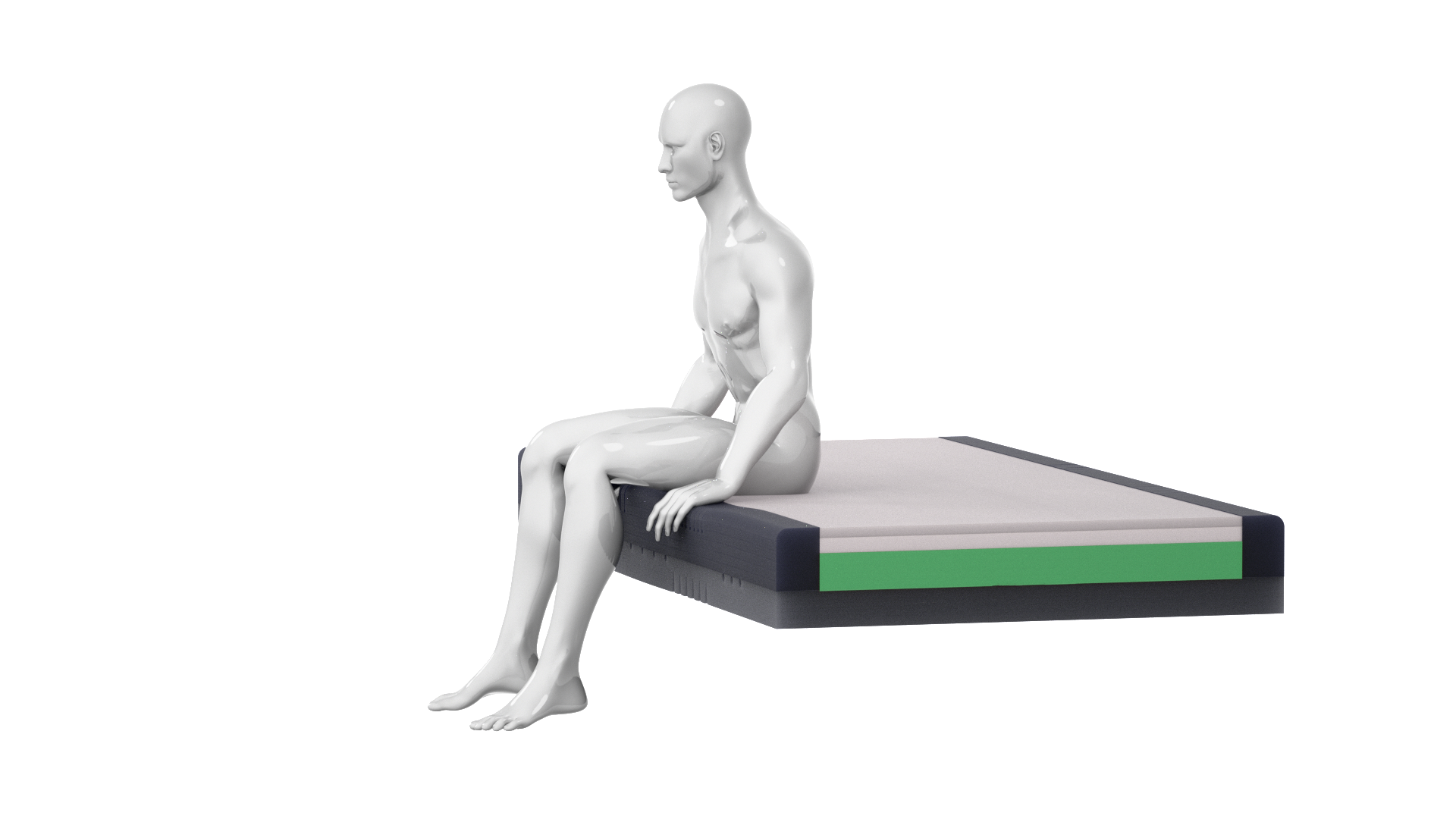 Reinforced edge support and a structured perimeter provide a stable surface for transfers. The radius edge design assists with safer entry and exit, while high-density sidewalls improve overall edge integrity. This supports user confidence and reduces risk during seated or standing transitions.