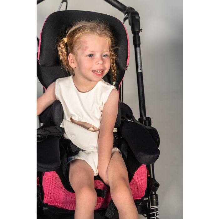 The Growing Tots Adaptive Singletsuit is thoughtfully designed to accommodate the varying positioning of gastrostomy tubes in children, recognising that each child's needs are unique. The garment features a strategically positioned abdominal access opening that allows for seamless access to gastrostomy feeding without compromising comfort or mobility.