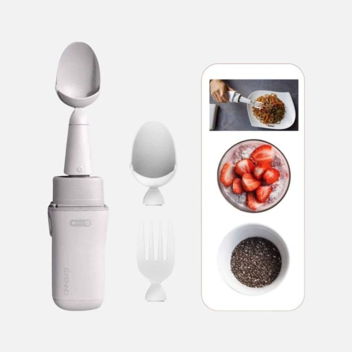 The Gyenno Bravo Twist Kit is designed to assist individuals with hand tremors or reduced hand control during meals.