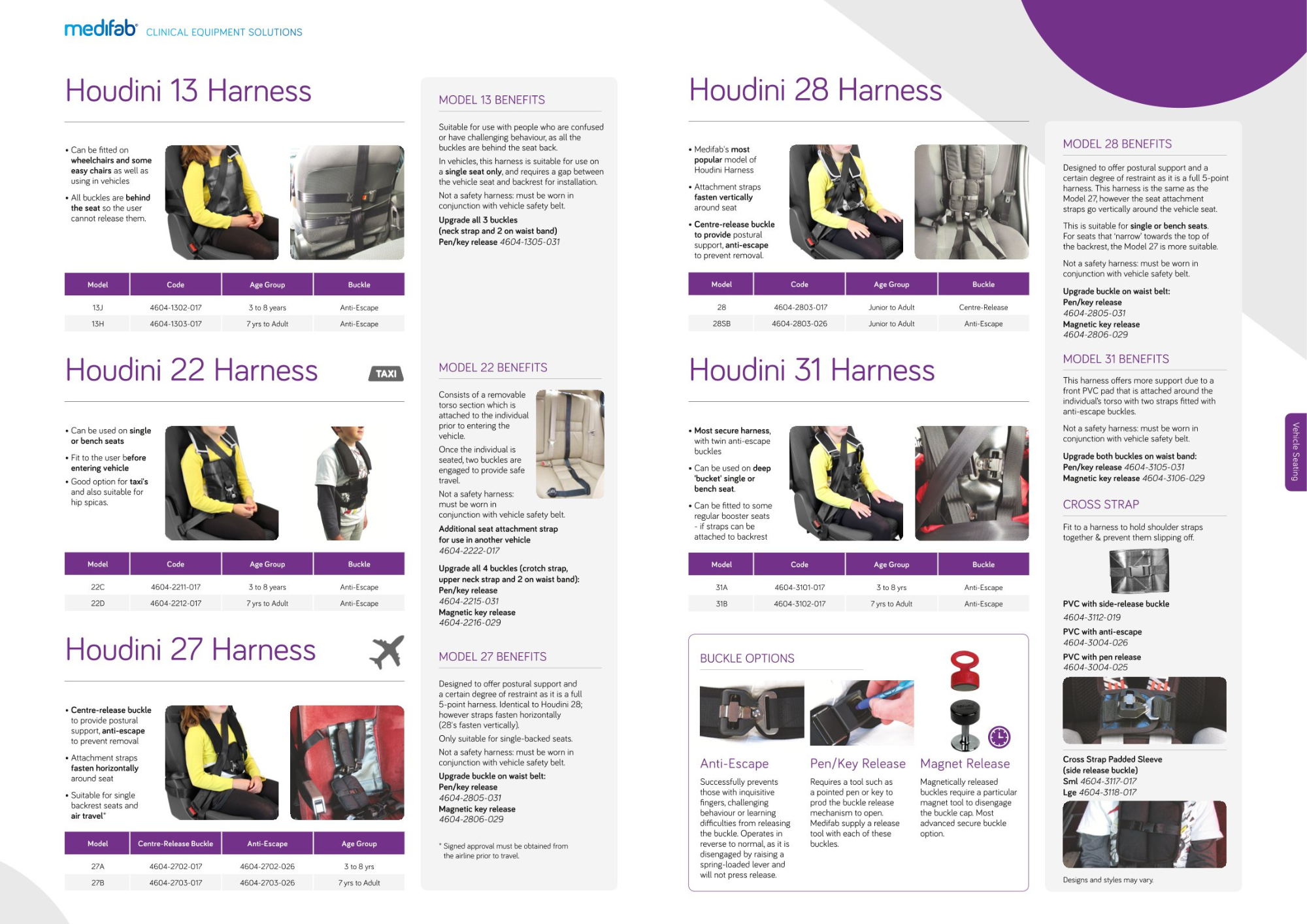 Must be worn in conjunction with a vehicle safety belt. For more information on the Houdini Harness range, please see the comparison chart in the product specifications.