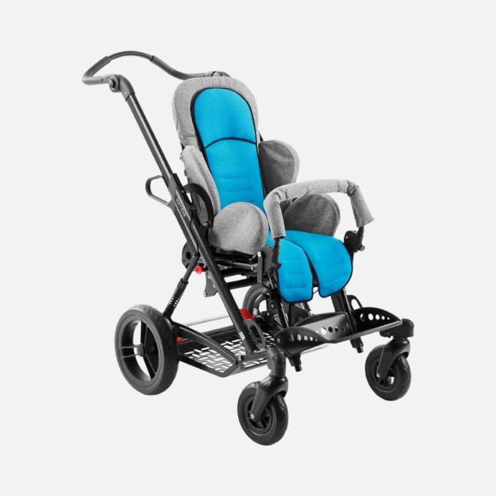 Flexible, versatile, individual. The ottobock Kimba stroller is a highly adjustable and supportive stroller designed for children aged 1-10 with complex posture support needs. The Kimba Stroller includes the Kimba seating unit + Kimba outdoor mobility base, with a broad range of options and accessories available.
