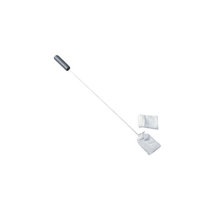 This long handled towelling toe washer has an extra long bendable stem with an easy grip built up plastic handle and a flat wire frame covered in a white towelling pad for washing between the toes.