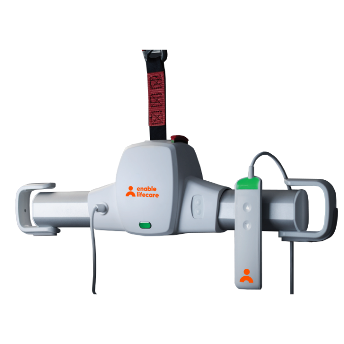 The Nimble 204 portable system is designed for carers to have the ability to transfer a patient lift from room to room. It is the smallest and lightest portable patient lift on the market. Some main features included in the Nimble 204 is wired hand control, LED indicators, infection control, and magnetic hand control docking.