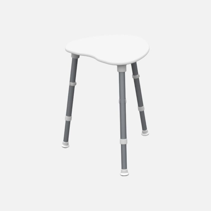 The Redgum Space Saver Corner Shower Stool is a compact seating solution designed for use in corner shower areas where space is limited. It is suited for users who require stability while seated during showering and need a smaller footprint for easier positioning. The stool features an angled seat to support posture and adjustable legs to accommodate different user heights and uneven surfaces, while non-slip leg tips provide stability on wet floors.