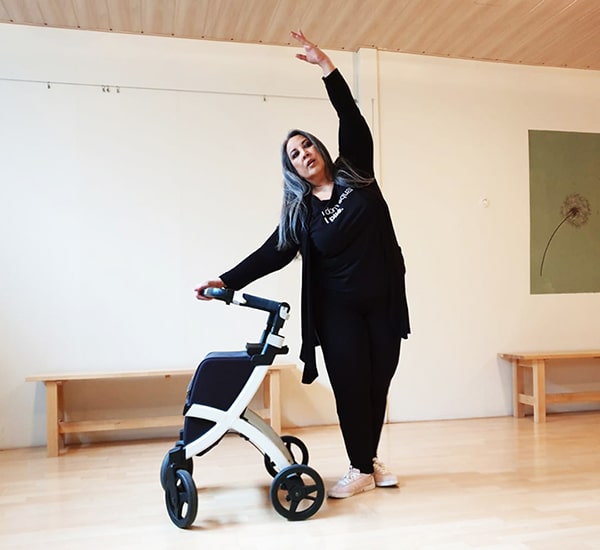 - Walker with integrated seat and storage designed for mobility and daily use.