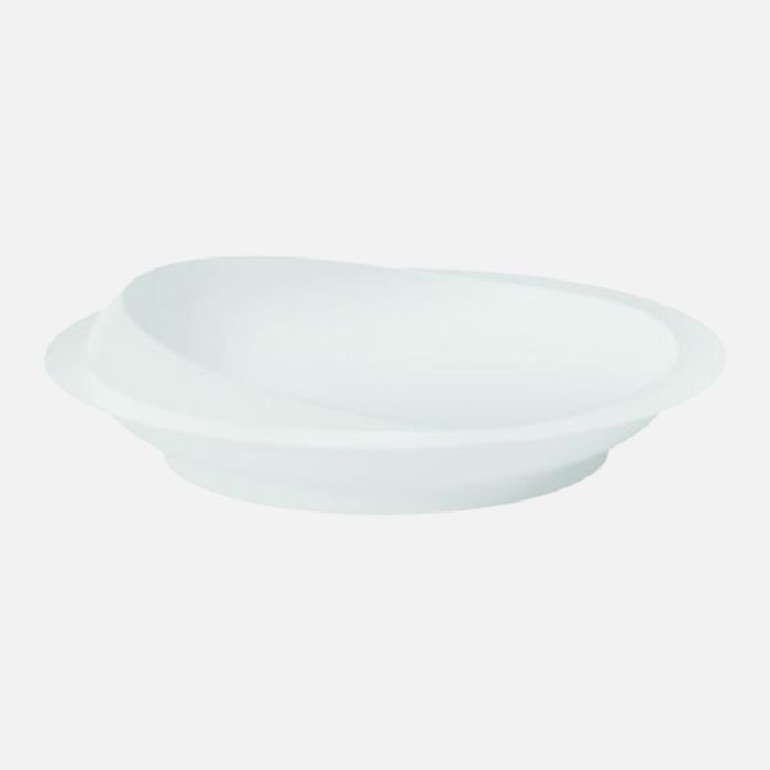 The elevated back wall helps guide food onto utensils, making scooping easier and reducing spillage. It is suitable for people who use one hand when eating.
