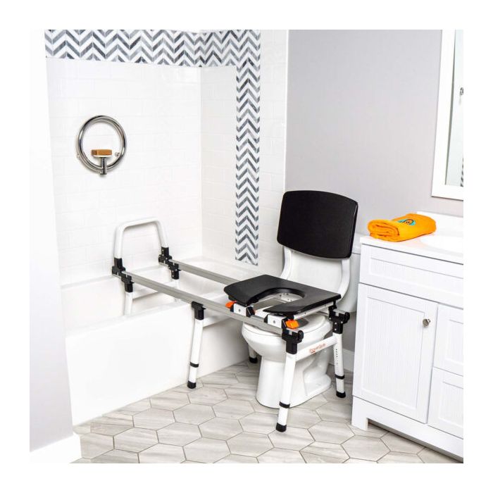 The ShowerGlyde is a sliding transfer bench that simplifies the process of moving in and out of the bath, reducing the risk of slips and falls.