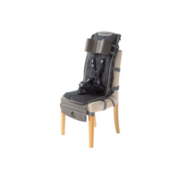 Until Now! Special Tomato has created the Out & About Seat (OAS) that provides comfortable upper body support using a padded, adjustable 8-Point Harness System and height adjustable Headrest. It will change where your family member with special needs can take a seat and remain comfortably seated while out with family and friends. The Special Tomato OAS can be attached to most standard, stable chairs that have a minimum seat back height of 14”.