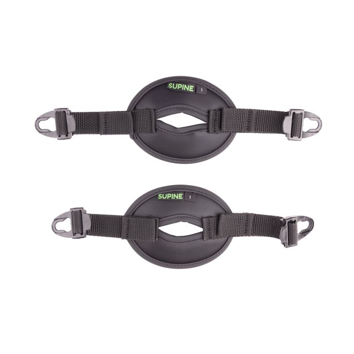 - Supine knee straps stabilize the knee on the padded leg support.