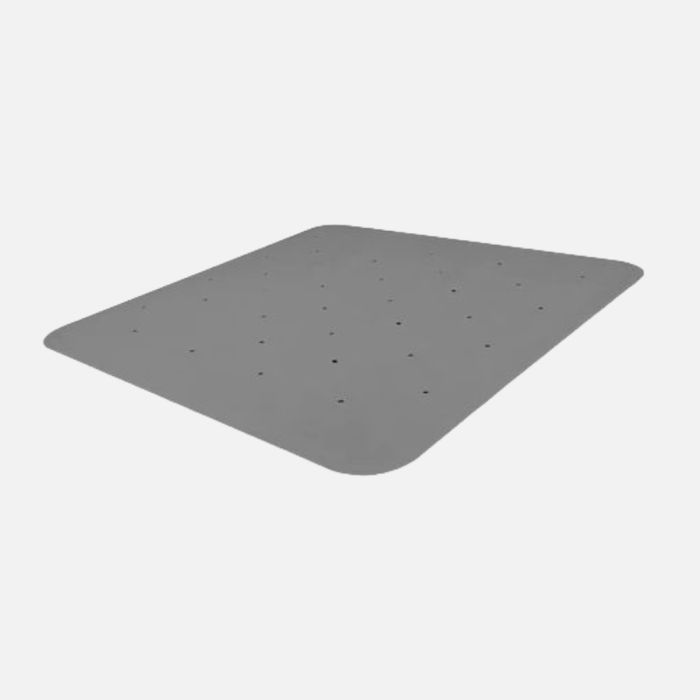 The textured top surface improves grip underfoot while multiple drain holes allow water to flow through the mat. This helps prevent water from pooling on the surface.