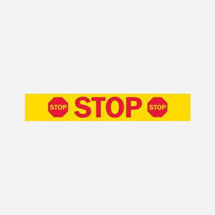 Made from durable vinyl, the banner can be trimmed at both ends to fit different doorway widths. It can be installed on doors, entryways, or restricted areas where a clear visual barrier or reminder is required.