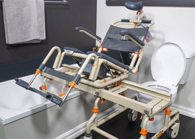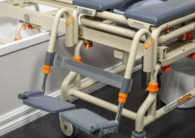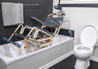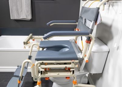 Thanks to its 0-30 degree tilt, in-home carers can lean users back to clear legs over the side of a bathtub-style shower. This isn’t just more comfortable for the user and makes transfers that much easier for carers, it also gives valuable pressure relief for the users comfort and weight distribution.